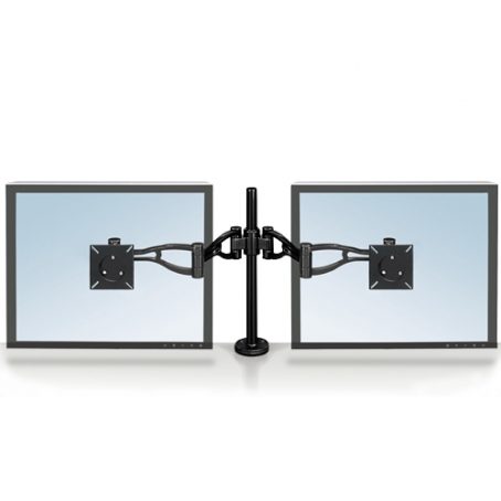 Le bras double écran pour bureau est un outil idéal pour n’importe quel type de bureau, il est extrêmement flexible dans son utilisation avec une rotation allant jusqu’à 37 degrés, et une rotation d’angle de 360 degrés.