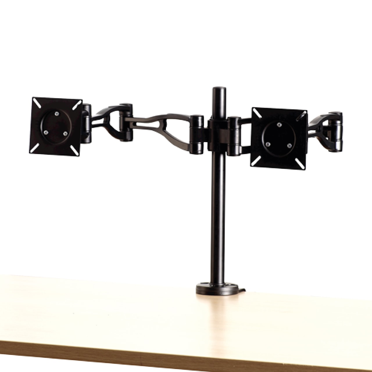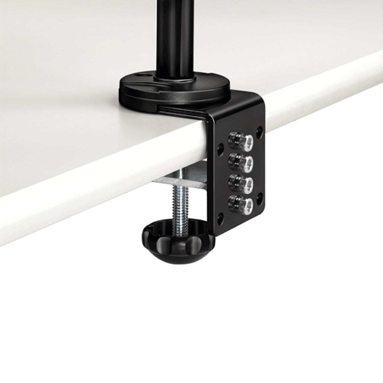 Facile d’installation, il se fixe sur le plan de travail, via une pince à pression, ou passant directement dans un obturateur d’un diamètre supérieur à 82 mm. Les écrans peuvent être fixés sur les bras amovibles, mais seulement ayant des fixations VESA, une norme d’interface utilisée par tous les grands fabricant d’écrans afin de permettre une installation de montages muraux.