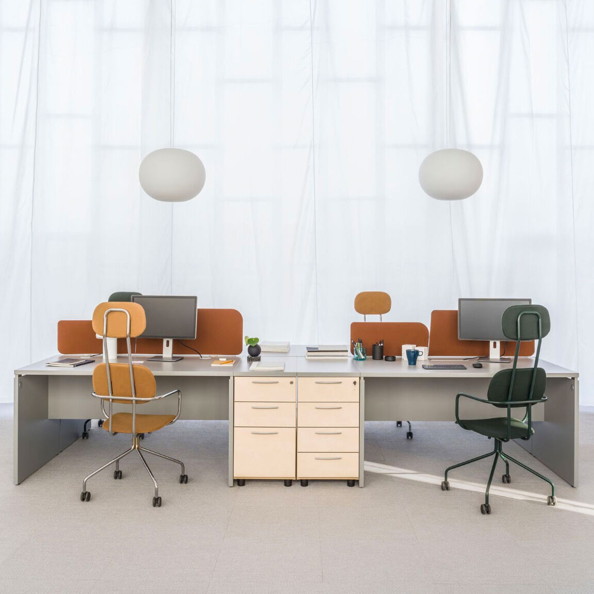 Le bureau individuel Ogi V est très facile à utiliser. Il suffit de le monter et de le disposer à l’endroit souhaité. Le bureau peut être est équipé de passage de câbles, ce qui permet de garder l’espace de travail organisé et propre.