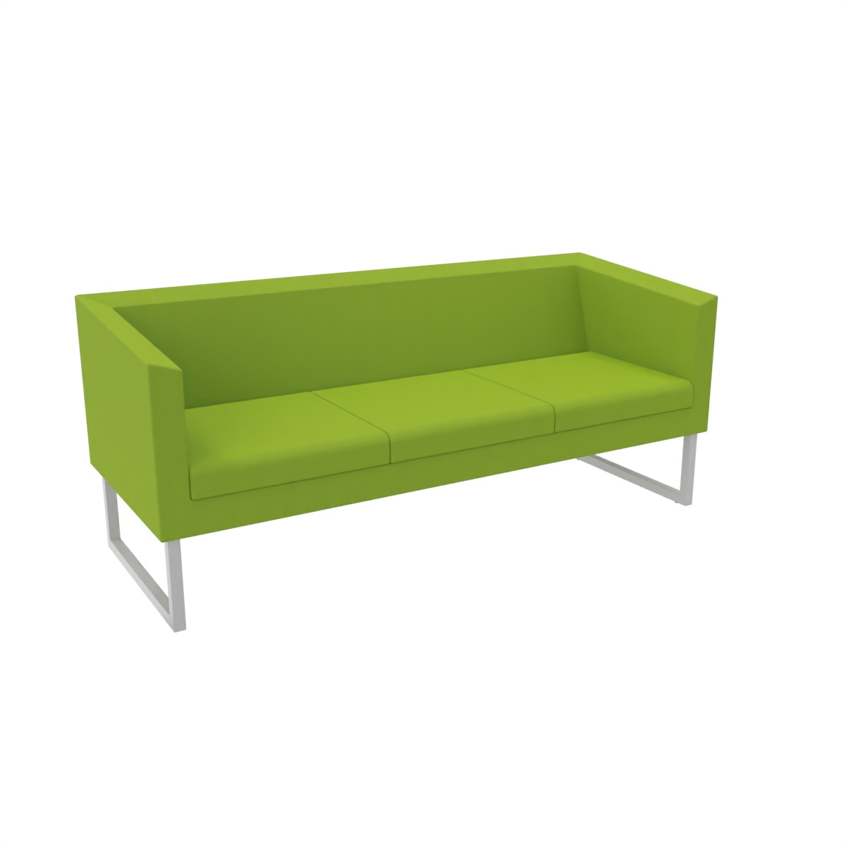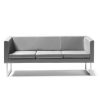 Chauffeuse 3 places avec accotoirs, piétement acier finition époxy aluminium sur. Finition cuir noir pour les parties en contact avec l’utilisateur, napel noir pour l’arrière dossier et les latéraux. Lignes droites, design sobre et intemporel. Possibilité de nettoyage ou de remplacement aisé des coussins de tapisserie déhoussables. Existe aussi en 1 et 2 places.