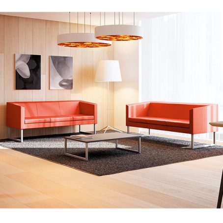 “PUNTA est une gamme au look très tendance. Élégante et raffinée en cuir, chaleureuse et conviviale en tissu c’est la garantie de l’aménagement réussi de vos espaces de réception, zones détente, coins lecture, etc. L’originalité de son piétement souligne la simplicité de ses formes et s’accorde harmonieusement avec les coupes biseautées de son dossier. Coussins déhoussables. Tables basses rectangulaires ou carrées assorties.”