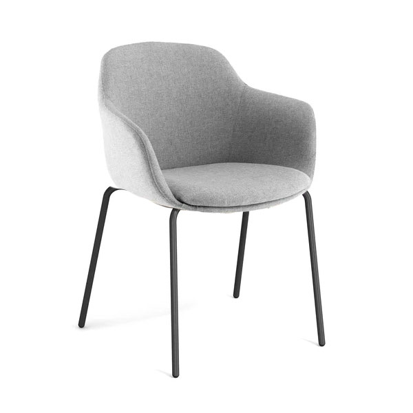 La chaise Loria tapissée est disponible en version 4 pieds fixe, offrant deux options de piètement : métal avec plusieurs finitions disponibles ou bois, vous permettant de choisir celui qui correspond le mieux à votre esthétique et à votre environnement.