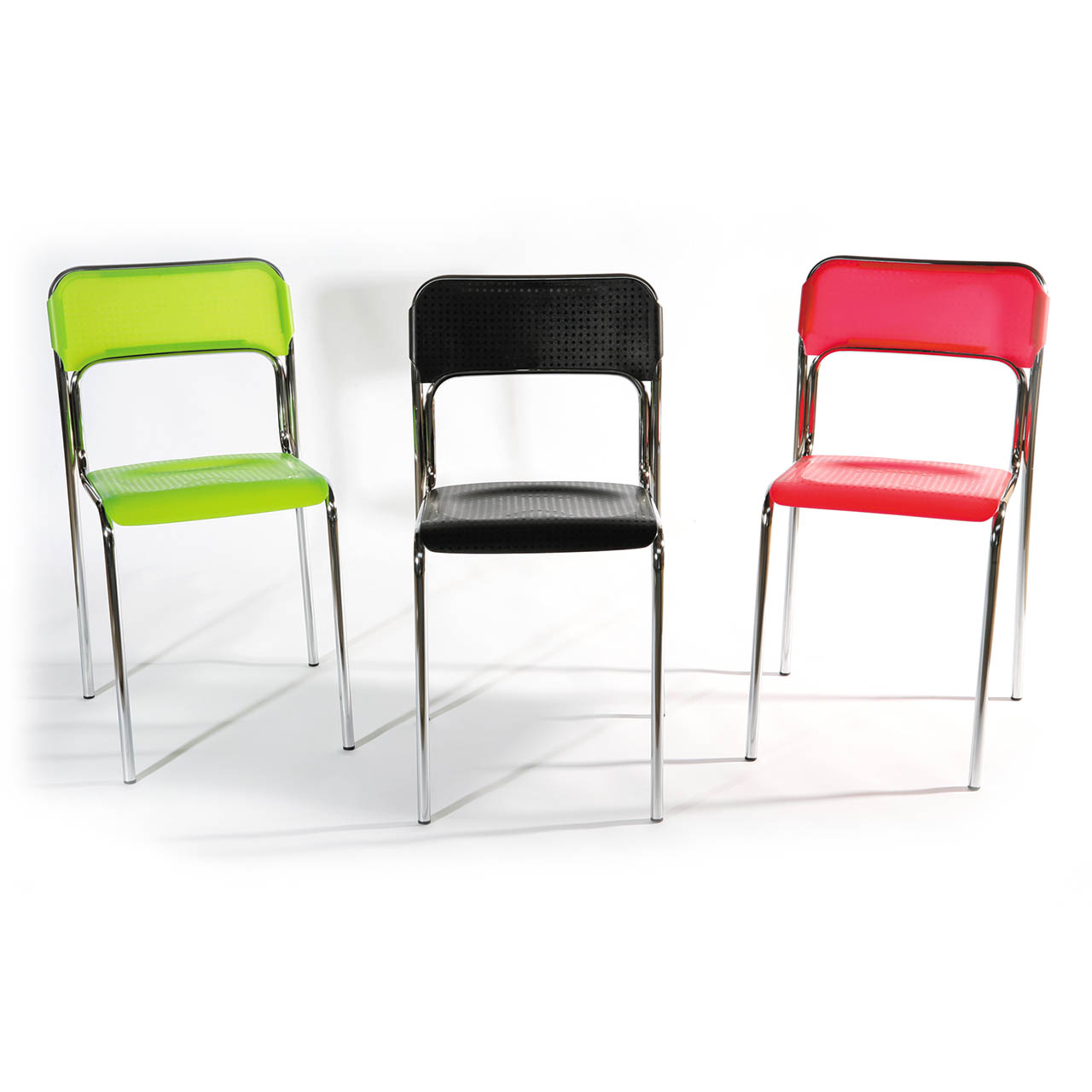 R : La chaise Fizz est disponible en noir, bleu, rouge et vert.