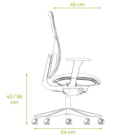 Dossier : Grand dossier de 56 cm de haut, entièrement réglable en hauteur, profondeur et inclinaison.