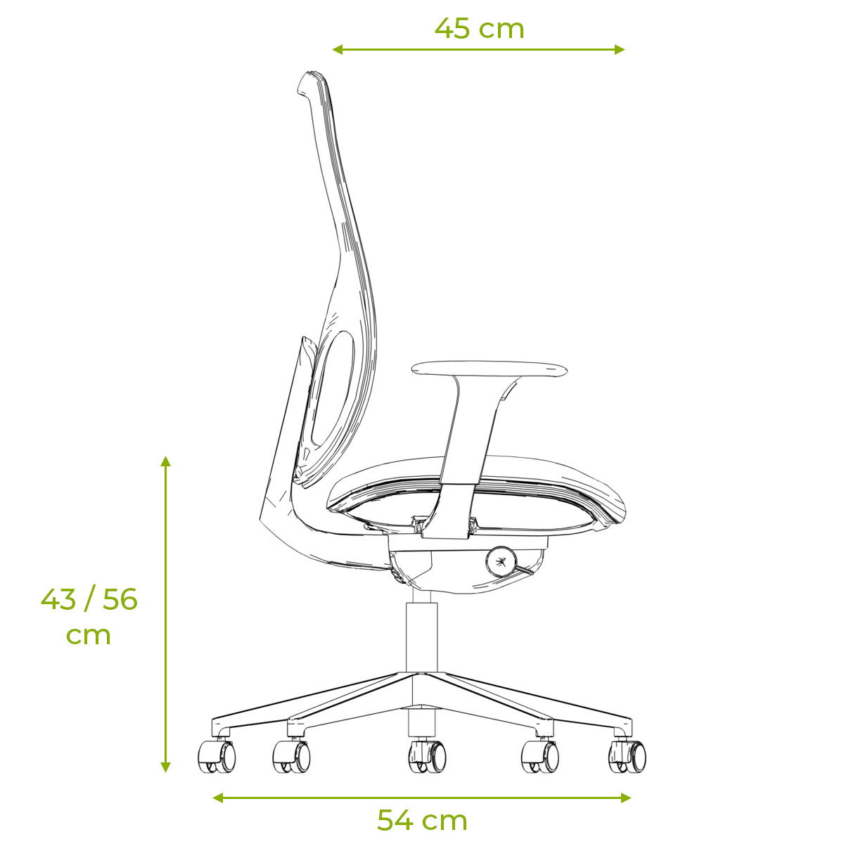 Dossier : Grand dossier de 56 cm de haut, entièrement réglable en hauteur, profondeur et inclinaison.