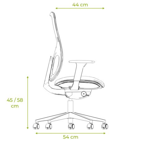 Assise : Hauteur réglable par lift pneumatique de 45 à 58 cm.