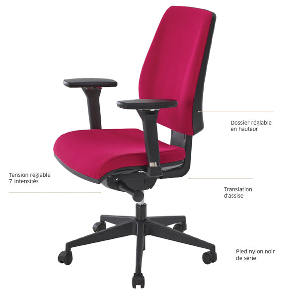 La chaise de bureau Ryan est garantie 3 ans dans des conditions d’utilisation normale, 8 heures par jour. Elle convient parfaitement aux utilisations en tant que chaise de bureau ou fauteuil opératif. Disponible en plusieurs couleurs, elle peut être équipée d’accoudoirs et de roulettes en option.