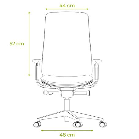 Le fauteuil de bureau Wendy est équipé d’un mécanisme basculant synchrone, avec un réglage par manette pour le blocage/déblocage du dossier et pour le réglage de la hauteur d’assise par vérin à gaz autoporteur. Le piétement est une étoile 5 branches en polyamide avec des roulettes doubles galets en polyamide de diamètre 50 mm et un pivot en acier diamètre 11 mm.