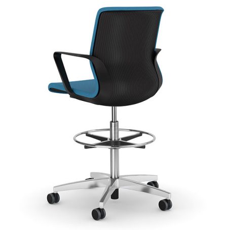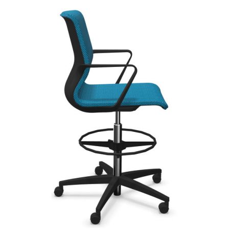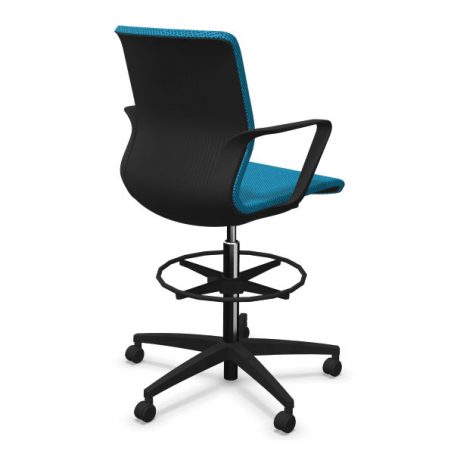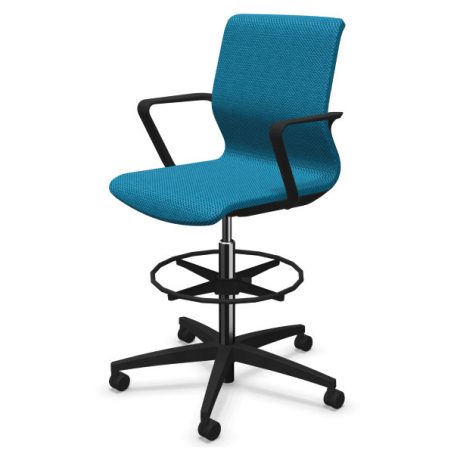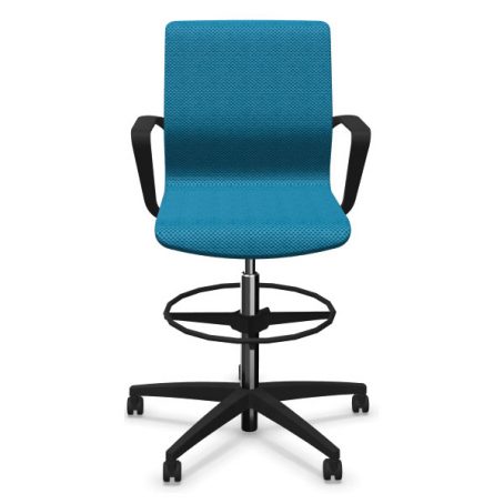 Siège avec vérin haut et repose-pieds. Mono-coque en polyamide, capitonnage en mousse de polyuréthane haute résilience. Dossier en maille tendue sur coque sans mousse. Réglage de la hauteur d’assise par vérin de sécurité pneumatique. Piétement composite fibre de verre équipé de roulettes multifonction auto-blocantes pour sols durs et souples selon norme EN 12529. Roulettes multifonction autoblocantes pour sol dur et souple, en option.