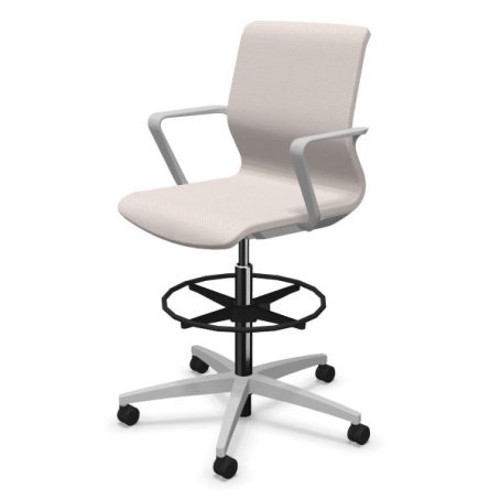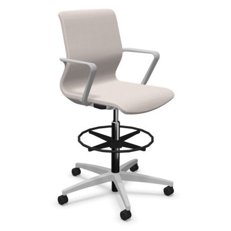 Siège avec vérin haut et repose-pieds. Mono-coque en polyamide, capitonnage en mousse de polyuréthane haute résilience. Dossier en maille tendue sur coque sans mousse. Réglage de la hauteur d’assise par vérin de sécurité pneumatique. Piétement composite fibre de verre équipé de roulettes multifonction auto-blocantes pour sols durs et souples selon norme EN 12529. Roulettes multifonction autoblocantes pour sol dur et souple, en option.