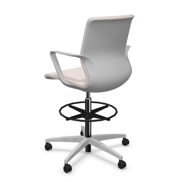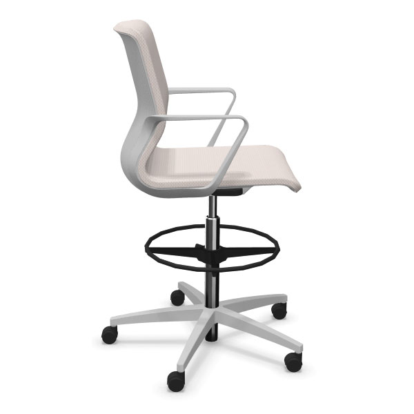 Le tissu de revêtement est – comme une peau de tambour – tendu sur un dossier en polypropylène. Ce siège offre ainsi le confort aéré d’un dossier maille combiné à la stabilité d’une coque de dossier pleine.”