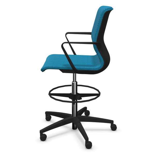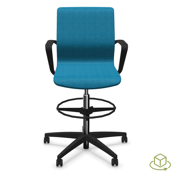 Siège avec vérin haut et repose-pieds. Mono-coque en polyamide, capitonnage en mousse de polyuréthane haute résilience. Dossier en maille tendue sur coque sans mousse. Réglage de la hauteur d’assise par vérin de sécurité pneumatique. Piétement composite fibre de verre équipé de roulettes multifonction auto-blocantes pour sols durs et souples selon norme EN 12529. Roulettes multifonction autoblocantes pour sol dur et souple, en option.