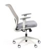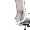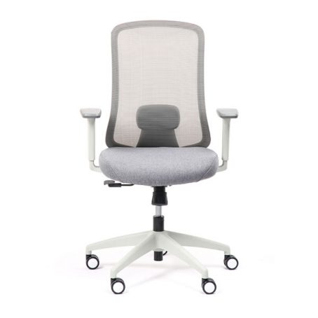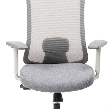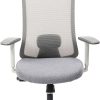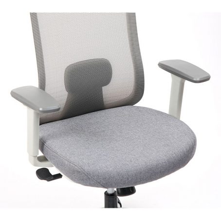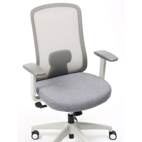 Spécificités :Le dossier est en maille fixée sur un cadre en nylon, avec un soutien lombaire réglable en hauteur. L’assise est en mousse collée sur un support en bois et recouverte de tissu, avec une coque en nylon en dessous. Le mécanisme de basculement est fixé sous l’assise. Le poids total du fauteuil est de 15,6 kg.