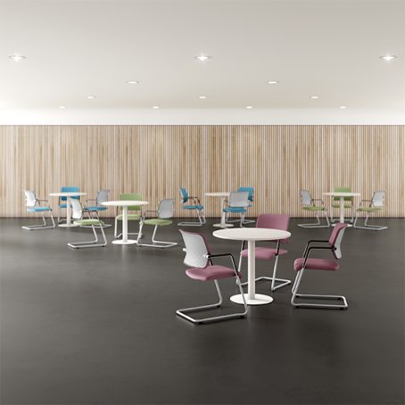 “Martin Ballendat a développé ce piètement luge attractif assorti à la série à succès Drumback. Les chaises visiteurs produisent un effet léger et filigrane, tout en étant cependant très robustes et en représentant un complément pratique de la série Drumback. Pour les dossiers, nous recommandons le revêtement Harlequin, disponibles en 17 couleurs. Pour l’assise, vous pouvez pleinement puiser dans les plus de 100 tissus de la Collection Viasit.”