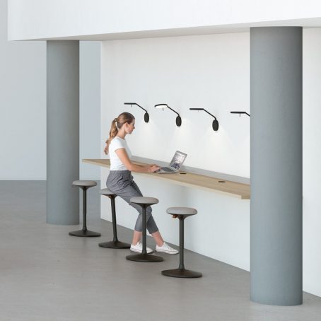 Le tabouret assis-debout « CLOONCH » tire son nom de la langue régionale d’Allemagne le Sarrois, signifiant « Basculant ». Pensé et fabriqué en Allemagne par le fabricant VIASIT, le CLOOCH est un siège confortable, dynamique et réglable, apprécié par son usage facile, élégant, mais surtout ergonomique. Avec son capitonnage agréable et sa grande plage de réglage, il est facile d’alterner une position de travail assise et debout.