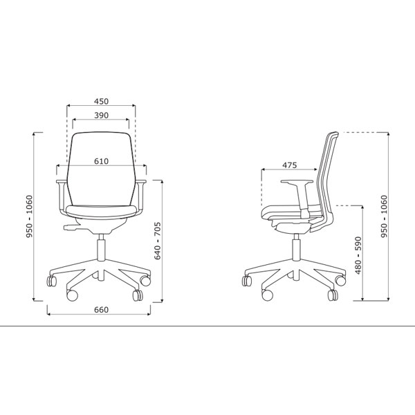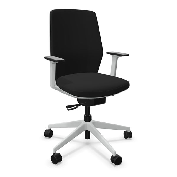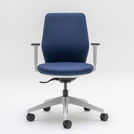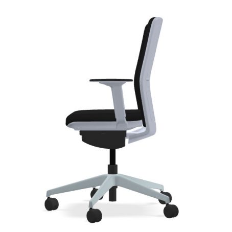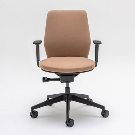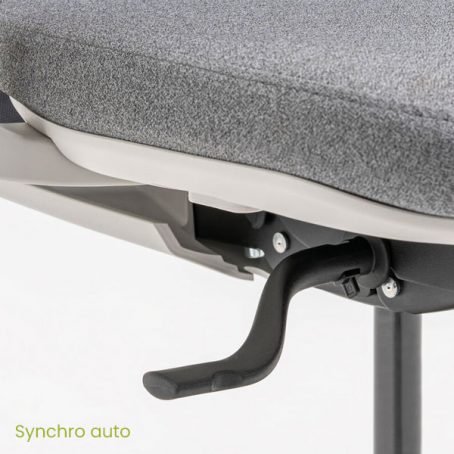 Dans cette version, l’Evo est équipé d’une assise et d’un dossier tapissés. Comme pour la version résille, l’Evo tapissé présente un très bon rapport qualité prix. Le fauteuil propose par défaut un soutien lombaire réglable en hauteur sur 60 mm mais également d’une translation d’assise de 60 mm. Pour le mécanisme, vous pouvez opter pour un synchro auto, ne nécessitant pas de réglage particulier pour gérer la tension du dossier (4 points de blocage) ou un mécanisme synchrone classique, permettant de régler précisément la tension du dossier (5 points de blocage). L’Evo peut également être accompagné d’accoudoirs 2D, réglable hauteur (sur 60 mm) et en profondeur (sur 50 mm).