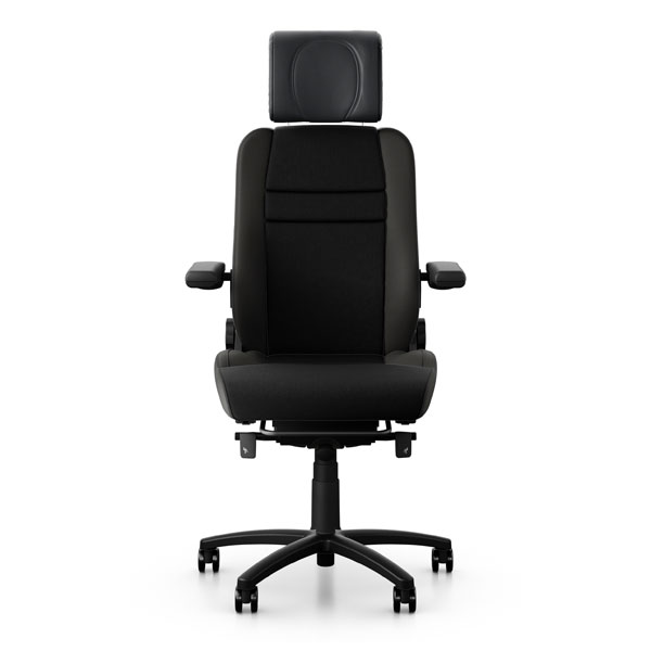 Fauteuil de bureau conçu pour un usage 24/24. Mécanisme synchrone avec personnalisation de la tension et blocage multi positions avec translation d’assise. Dossier réglable en inclinaison pour un confort optimal de l’utilisateur. Siège aux dimensions généreuses, très solide et confortable, conçu pour résister jusqu’à 234 kg. Le dossier est équipé d’un soutien lombaire réglable en profondeur ainsi que d’une têtière réglable en hauteur, en inclinaison et en profondeur.
