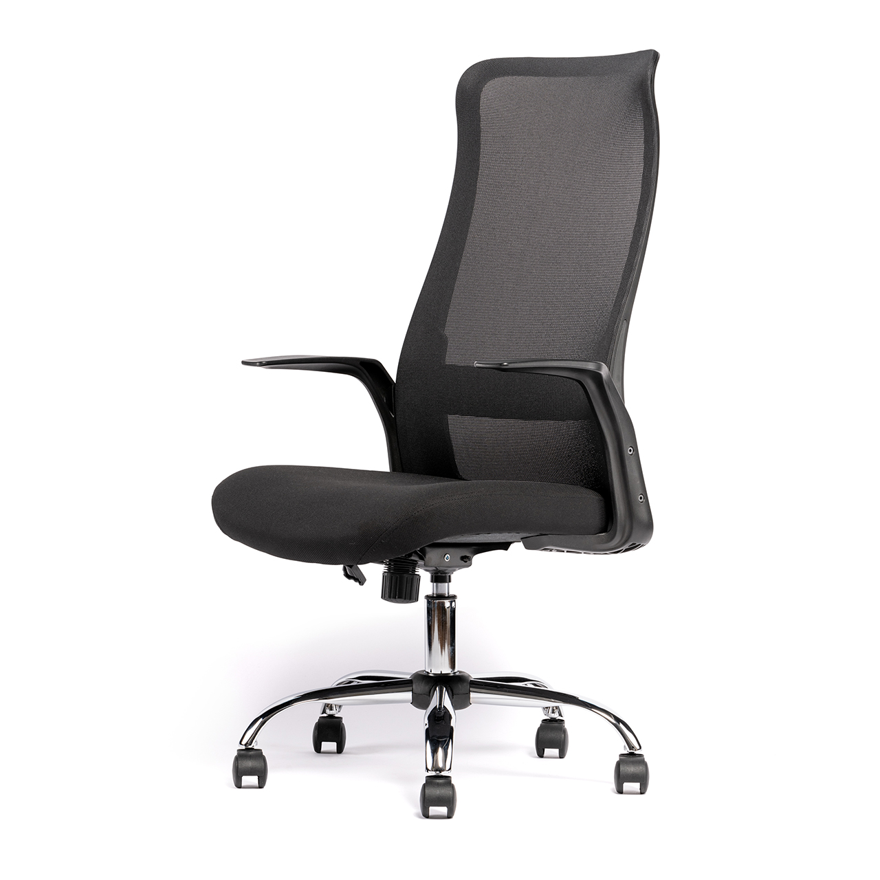 Le fauteuil bureautique Book propose un confort professionnel optimisé grâce à son mécanisme basculant avec tension réglable et son réglage en hauteur par lift pneumatique. Adapté au poste de travail moderne, il associe une assise en tissu noir à un dossier résille offrant un soutien lombaire efficace, le tout dans une structure robuste avec une base en acier chromé.