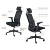 Le Carlos est un fauteuil de bureau ergonomique très complet à petit prix. Ce dernier présente de nombreux avantages. Le siège est composé d’une assise d’une résilience de 40 kg/m3 avec un dossier et une têtière en maille noire. Pour plus d’ergonomie, le fauteuil est composé d’accoudoirs 4d avec manchettes soft touch souples. Via son mécanisme, le fauteuil est blocable dans 4 positions différentes, la tension du dossier est réglable automatiquement en fonction du poids de l’utilisateur. Avec une translation d’assise il est possible de régler la profondeur d’assise, idéal pour les personnes de grande taille. Avec un soutien lombaire réglable en hauteur, il est possible d’ajuster facilement le renfort lombaire du fauteuil. Le piètement du Carols est composé d’une étoile à 5 branche en nylon noir.