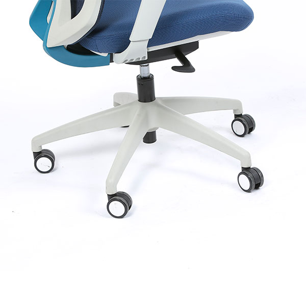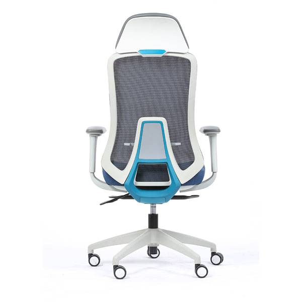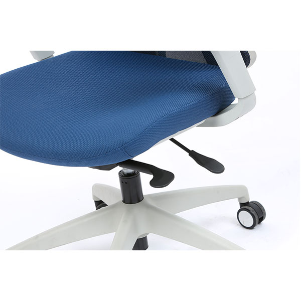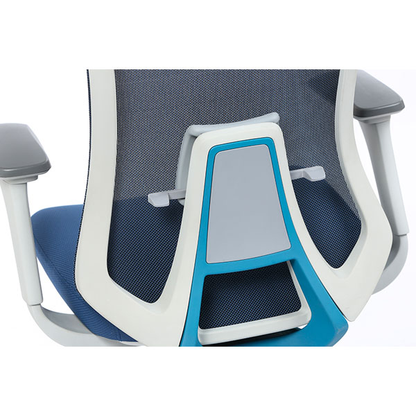 dossier en maille fixée sur cadre nylon noir ou blanc, soutien lombaire en polyuréthane réglable en hauteur.