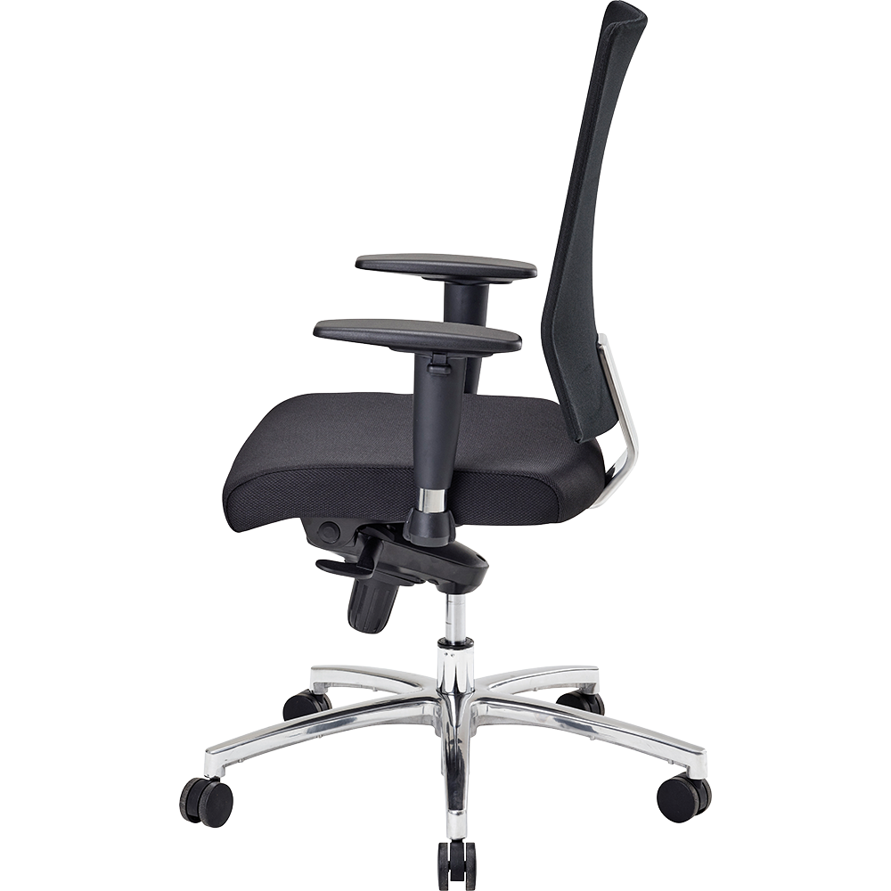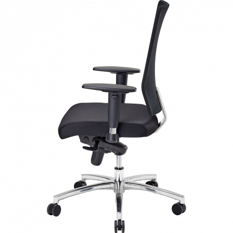 | Matériaux | Assise : Mousse polyuréthane (60 kg/m³), tissu noir; Dossier : Tissu Mesh noir; Piétement : Aluminium chromé |
