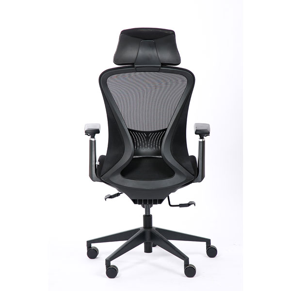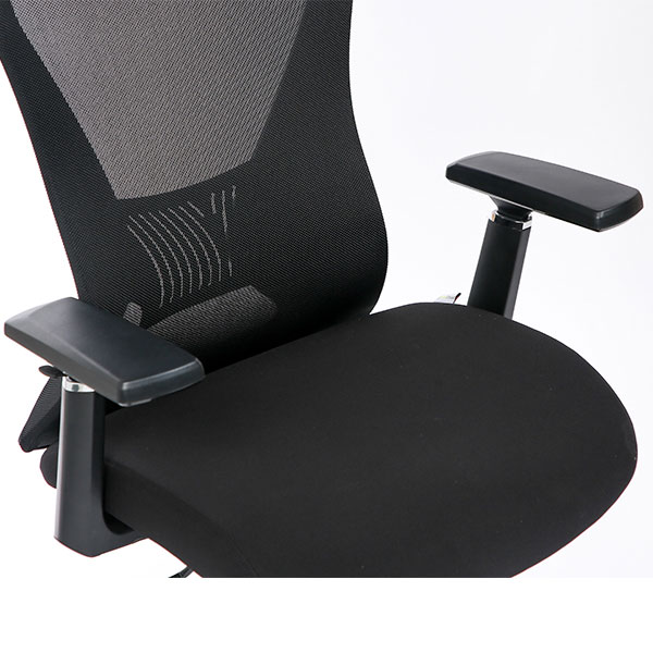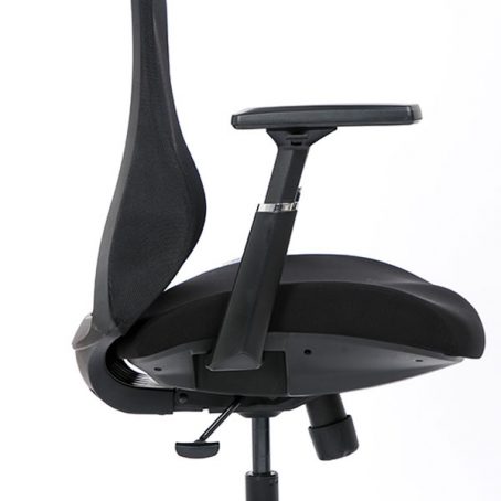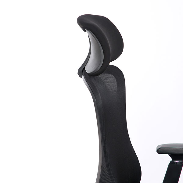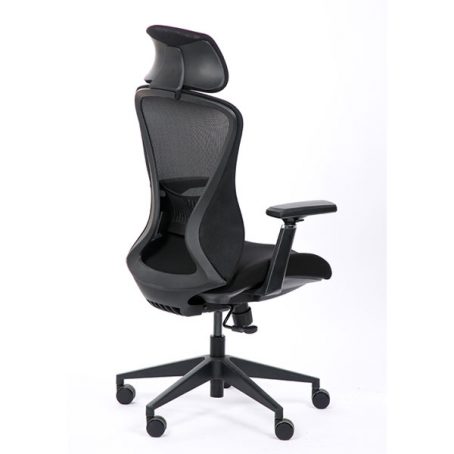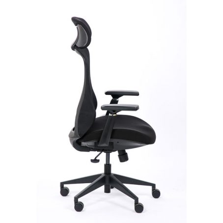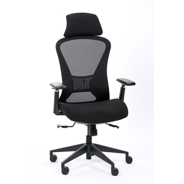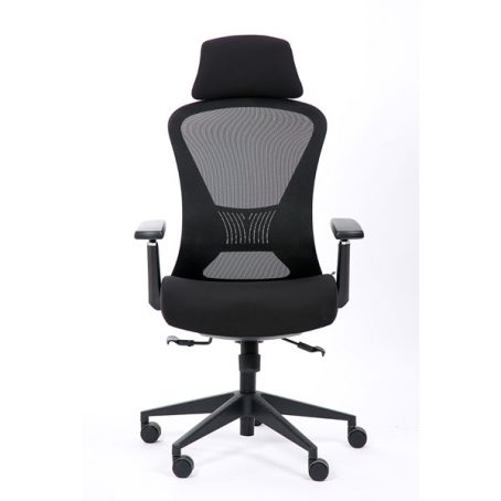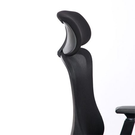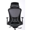Fauteuil synchrone en maille et tissu, accoudoirs 3D, soutien lombaire et appui-tête réglables en hauteur, translation d’assise.