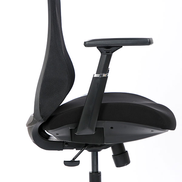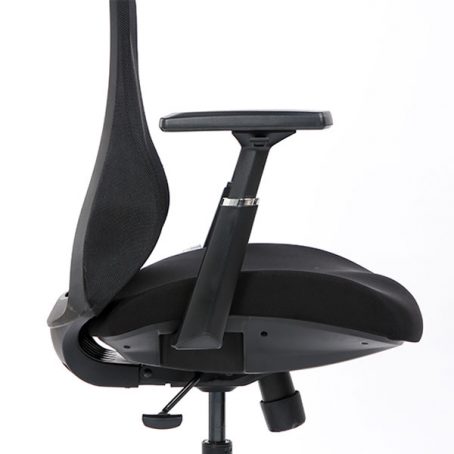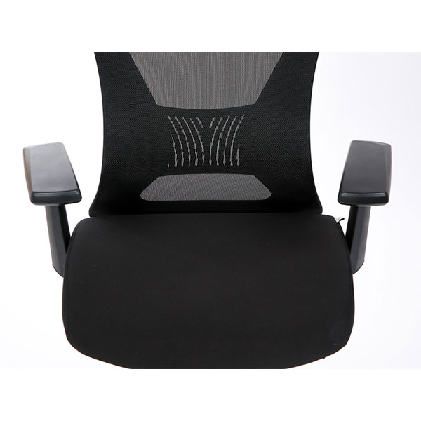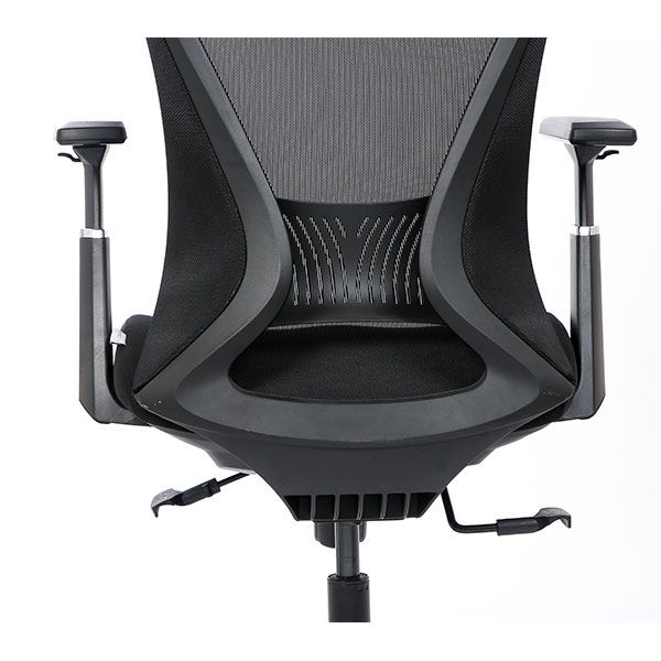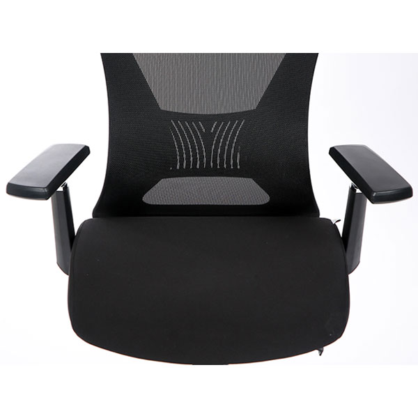 Dossier en maille fixée sur cadre nylon soutien lombaire réglable en hauteur.