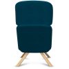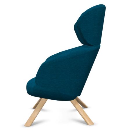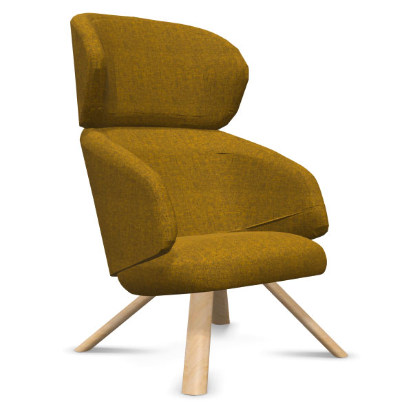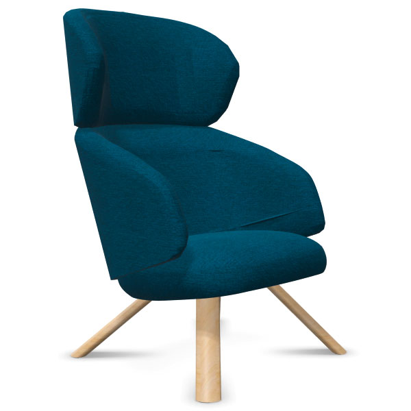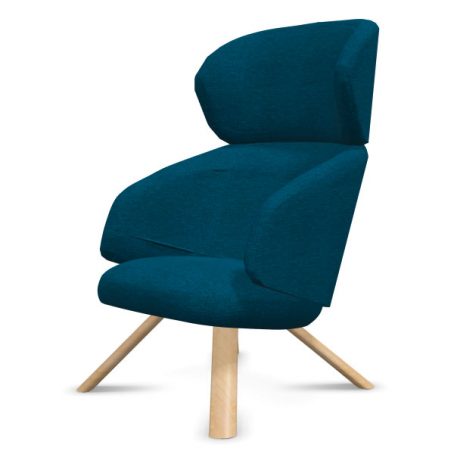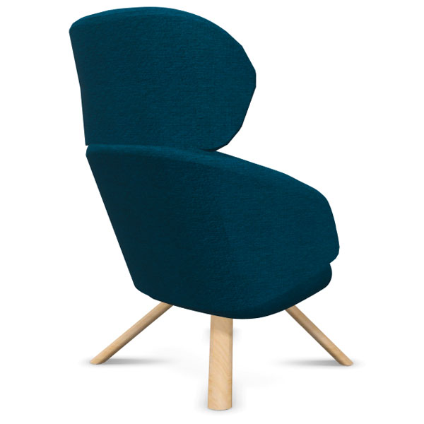 “Baptisée Eztia, « miel » en Basque, ce fauteuil lounge se caractérise par la douceur de ses courbes et de son confort enveloppant. Son design aux dimensions généreuses invite à s’y relaxer le temps d’une pause et en font une pièce maitresse quel que soit l’environnement dans lequel il sera placé. La forme très originale de son piétement 4 branches en bois de chêne accentue l’aspect chaleureux et convivial de la gamme. La famille se compose d’un fauteuil haut, d’un fauteuil bas, d’un pouf repose-pieds et d’un ensemble de 3 tables basses en chêne massif. Coussin têtière amovible en option.”