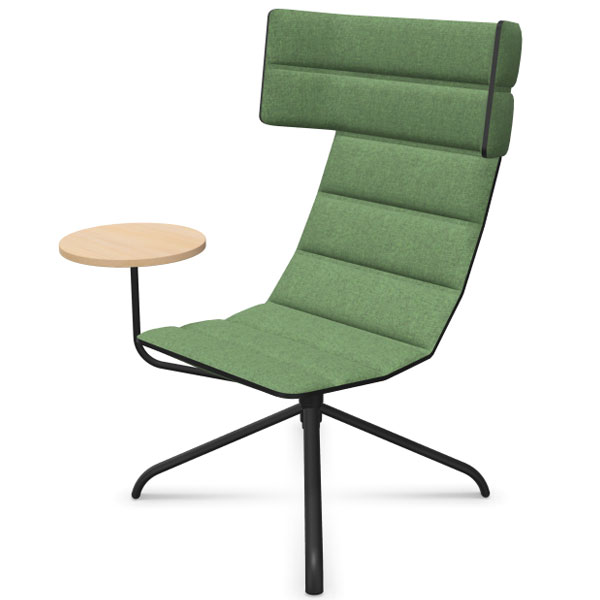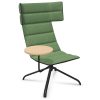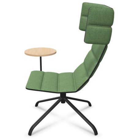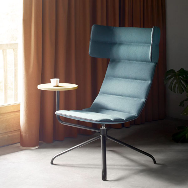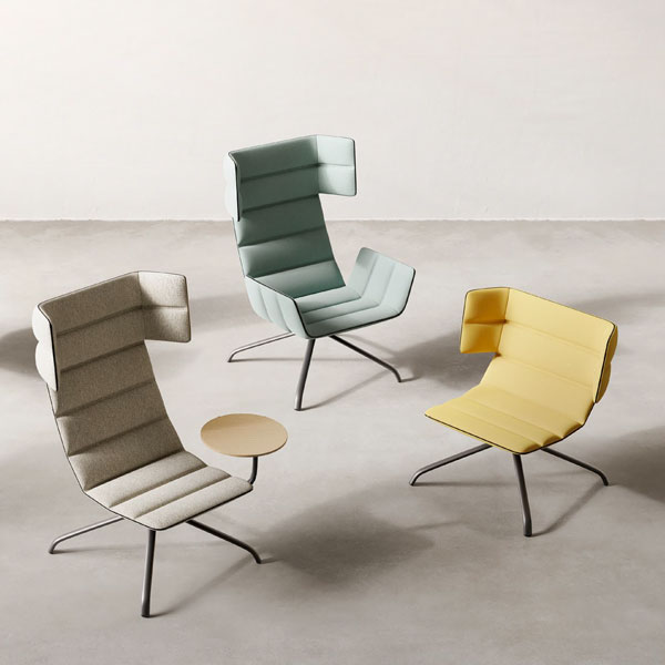 “Ildo, « sillon » en basque, est une gamme de fauteuils lounge iconique qui se distingue par l’originalité de ses bandes matelassées, qui lui confèrent un confort incroyable et une élégante intemporalité. Conçus pour apporter une touche de style unique à tous les espaces contemporains d’entreprises, publics, ou résidentiels, Ildo illustre aussi parfaitement le savoir-faire tapissier de Sokoa qui fête ses 50 ans cette année. En effet, plus de 2 heures sont nécessaires à la confection de ces housses ultra techniques. La gamme se compose de plusieurs hauteurs de dossier avec ou sans accotoirs et têtière et de 2 types de piétements giratoires 4 branches. Le modèle dossier haut sans accotoirs propose en option un bras tablette avec plateau bois finition chêne blanchi.”