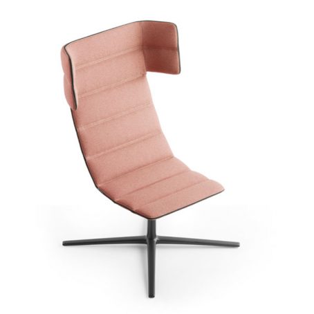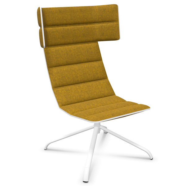 Gamme de fauteuils lounge iconique qui se distingue par l’originalité de ses bandes matelassées, qui lui confèrent un confort incroyable et une élégante intemporalité.La gamme se compose de 4 versions et propose 2 piétements au choix, base 4 branches plate ou pyramidale : – Haut dossier (8 bandes matelassées) avec têtière et accotoirs.- Haut dossier (8 bandes matelassées) avec têtière uniquement. Cette version est déclinée avec un bras tablette plateau bois finition chêne blanchi.- Dossier moyen (7 bandes matelassées) avec accotoirs.- Dossier bas (6 bandes matelassées). Les housses tapissées avant et arrière sont reliées par un zip périphérique noir (ou blanc sur les versions avec piètement blanc). Fabrication exclusive en tissu Step, Noma et Select (nuancier Sokoa 2021-2022).