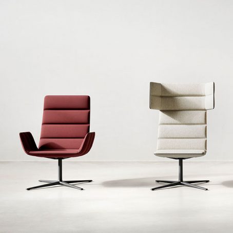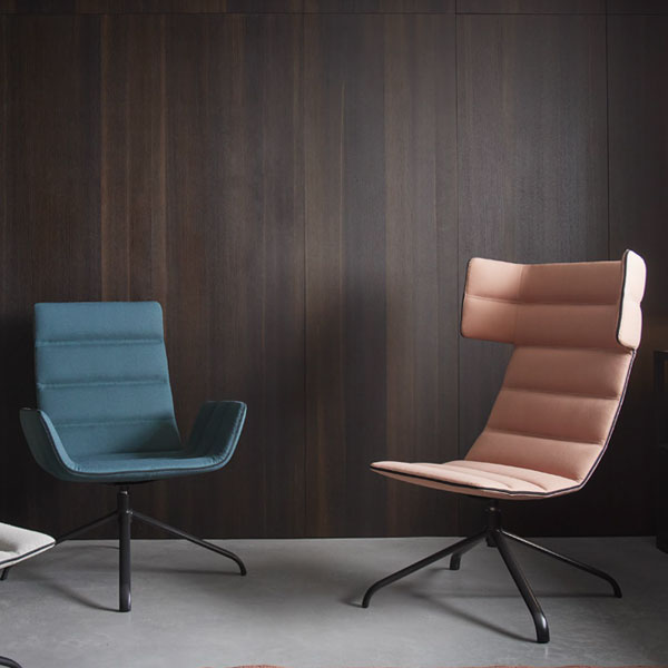 “Ildo, « sillon » en basque, est une gamme de fauteuils lounge iconique qui se distingue par l’originalité de ses bandes matelassées, qui lui confèrent un confort incroyable et une élégante intemporalité. Conçus pour apporter une touche de style unique à tous les espaces contemporains d’entreprises, publics, ou résidentiels, Ildo illustre aussi parfaitement le savoir-faire tapissier de Sokoa qui fête ses 50 ans cette année. En effet, plus de 2 heures sont nécessaires à la confection de ces housses ultra techniques. La gamme se compose de plusieurs hauteurs de dossier avec ou sans accotoirs et têtière et de 2 types de piétements giratoires 4 branches. Le modèle dossier haut sans accotoirs propose en option un bras tablette avec plateau bois finition chêne blanchi.”