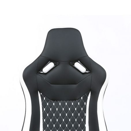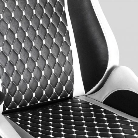 Dossier large en polyuréthane tendu sur mousse et bois, avec 2 « yeux » entourés d’une structure nylon.
