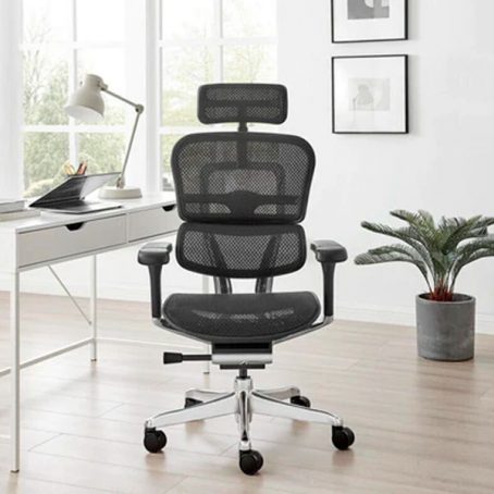 Le fauteuil Tech Ergo Human Elite présente un design moderne avec son piètement en aluminium chromé et son revêtement en maille, offrant une esthétique élégante et une excellente respirabilité. Le dossier est réglable en hauteur pour s’adapter à différentes tailles et morphologies, tandis que l’assise négative favorise une meilleure circulation sanguine et une posture plus dynamique.