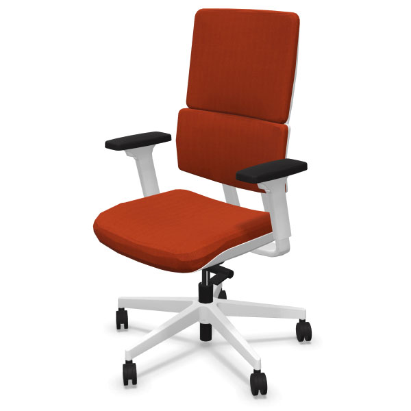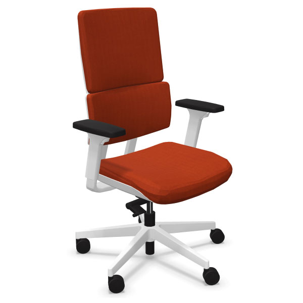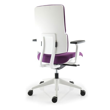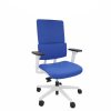Chaise bureautique haut dossier tapissé. Mécanisme synchrone avec régulation automatique de la tension, 3 positions d’ouverture de l’angle de basculement dont une de blocage en position de travail. Siège aux dimensions généreuses, très solide et confortable.