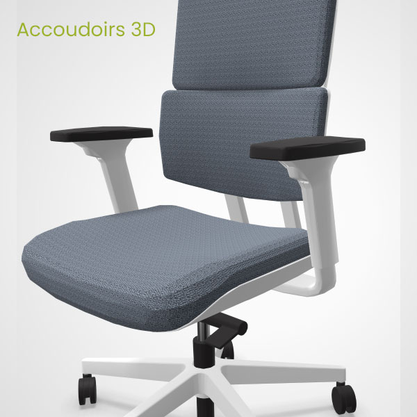 Accoudoirs 3D : Accoudoirs réglables en hauteur avec manchettes réglables en avant-arrière et latéralement.