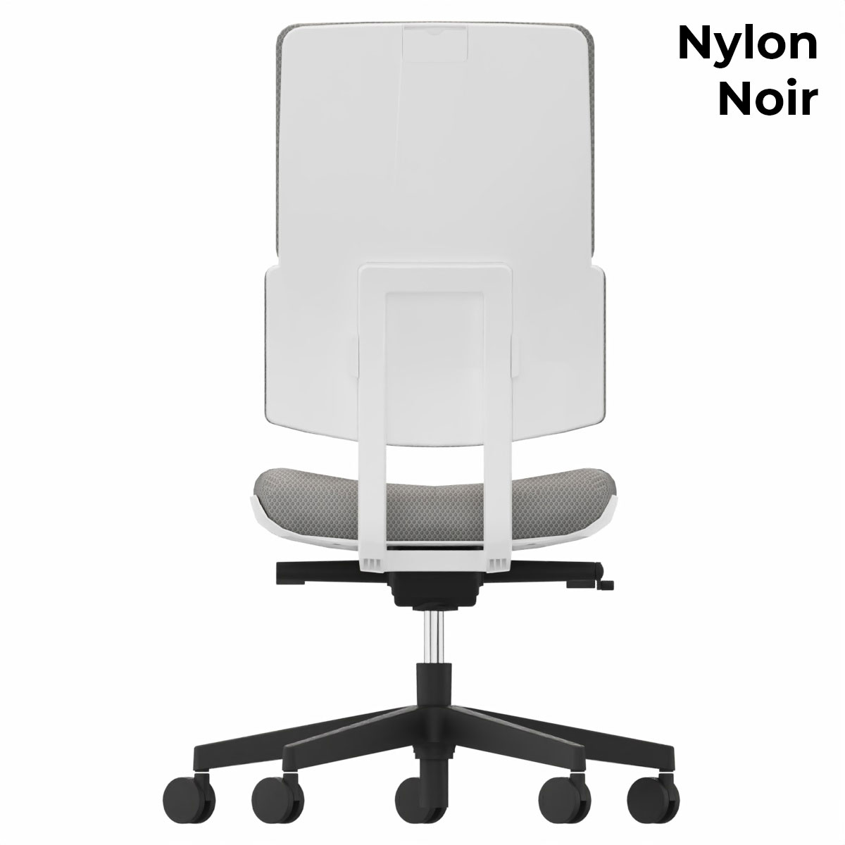 Coque dossier : Polypropylène injecté blanc, ép. 5 mm.