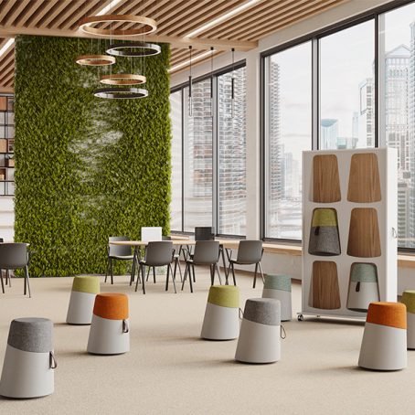 “Kulbu est un concept innovant d’assise et mobilier multifonction pensé pour répondre au développement du travail en mode projet, aux méthodes agiles et autres design thinking doublé d’une volonté de proposer une gamme utilisant des matériaux bio-sourcés.”