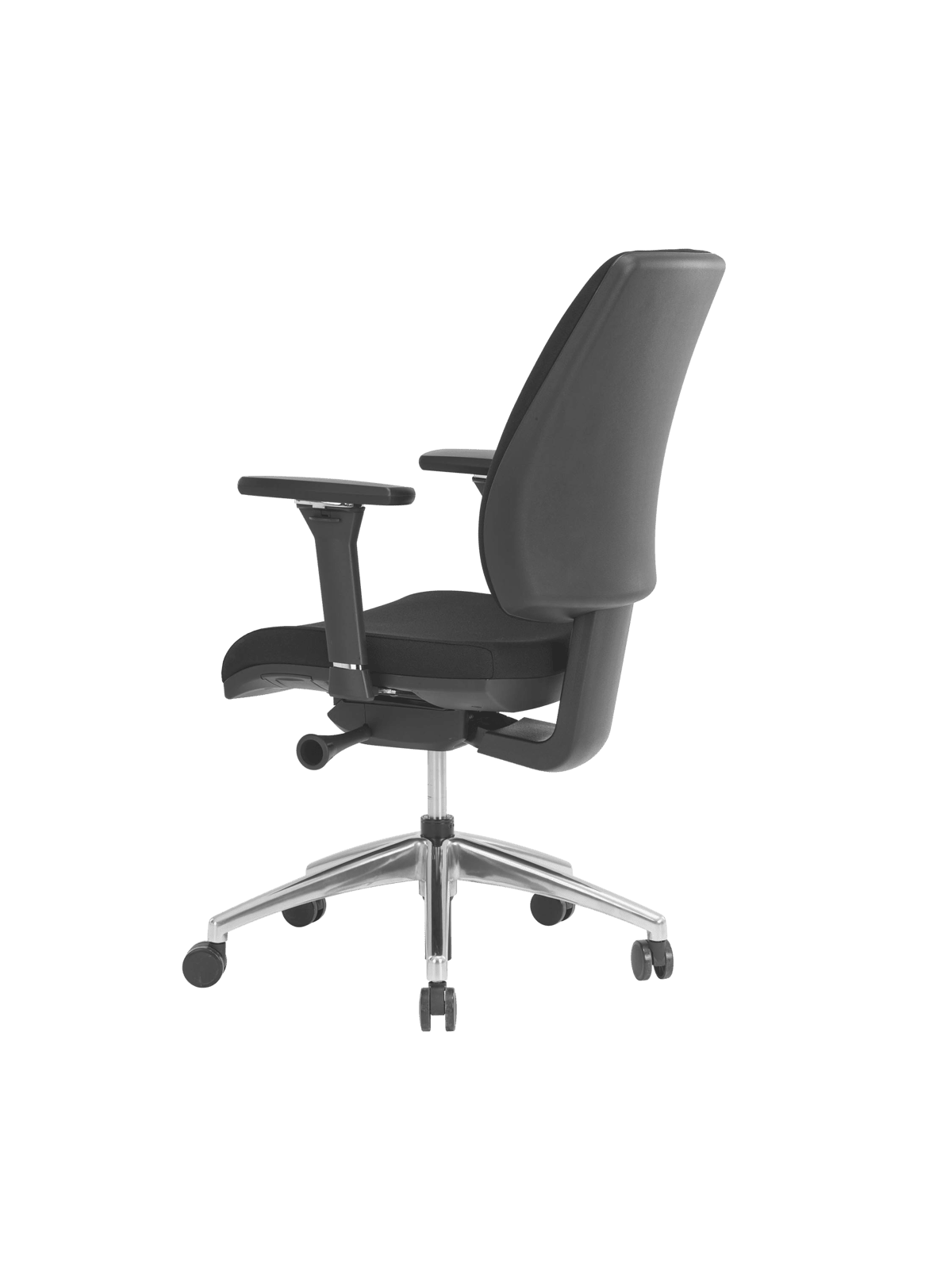 • Piétement en nylon : Le piétement en nylon à 5 branches garantit une grande stabilité et une mobilité fluide grâce à ses roulettes doubles galets. (Option Piétement aluminium poli disponible)