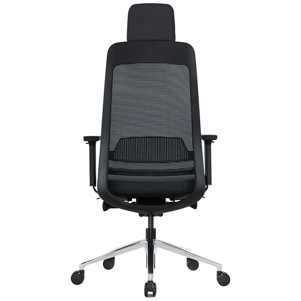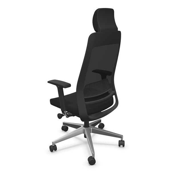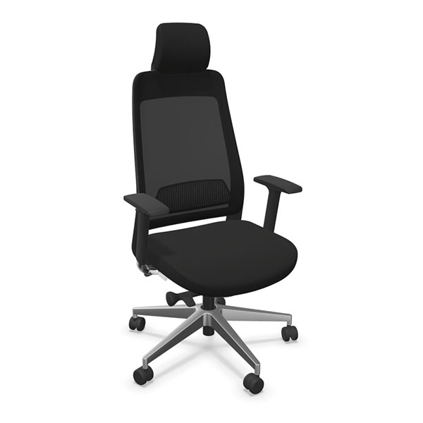 Le piétement est en étoile 5 branches en fonte d’aluminium poli de 700 mm et les roulettes sont doubles galets en polyamide de diamètre 60 mm. Ce fauteuil a une capacité de charge maximale de 110 kg et pèse 18 kg. Il est recommandé pour une utilisation de 8 heures par jour et est garanti 3 ans dans des conditions d’utilisation normale.