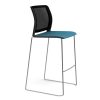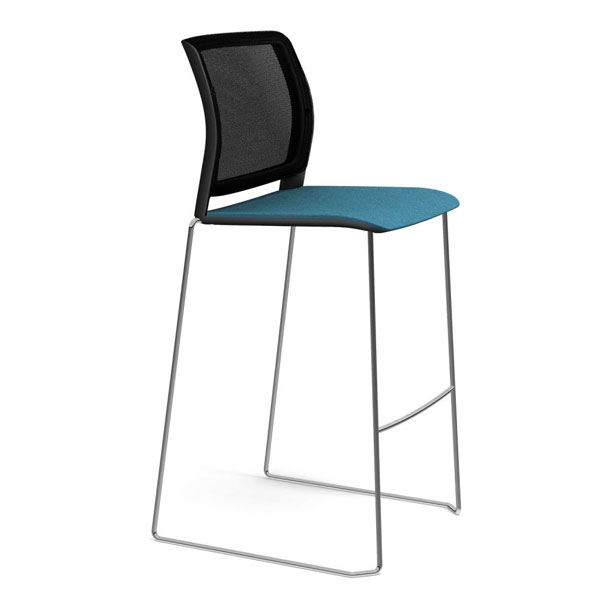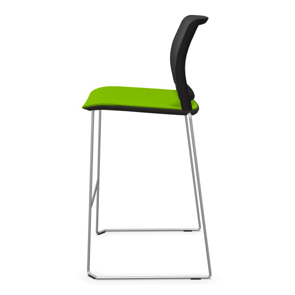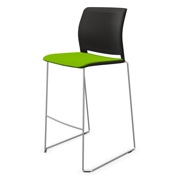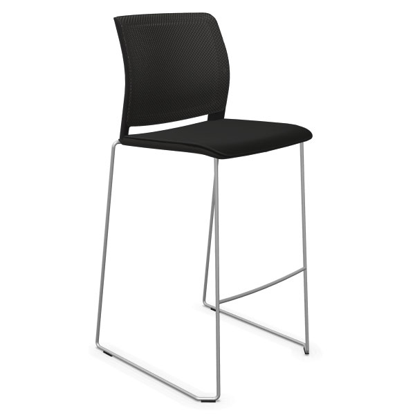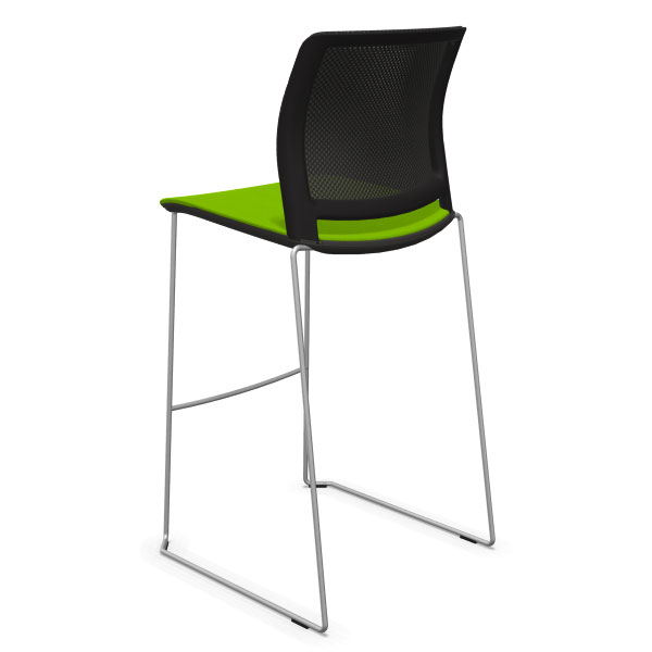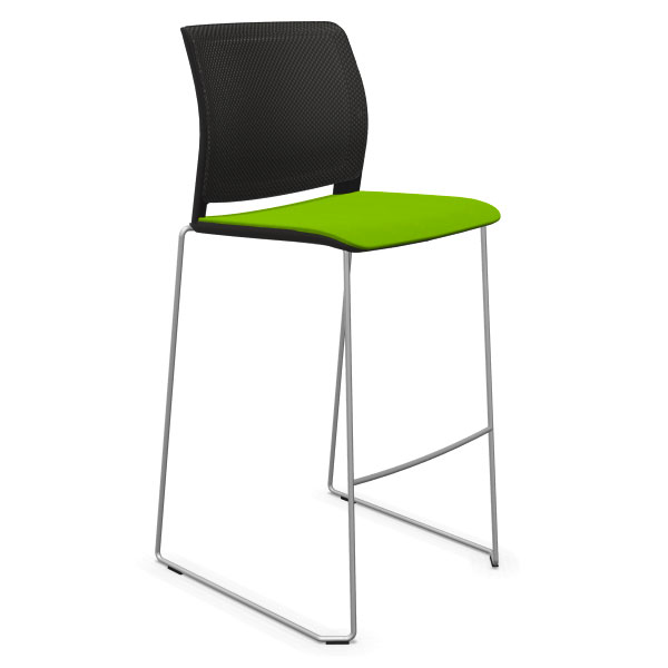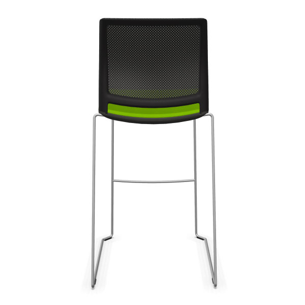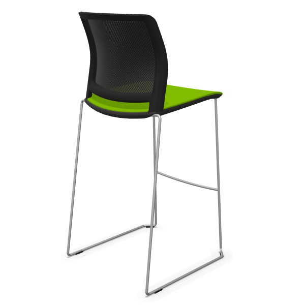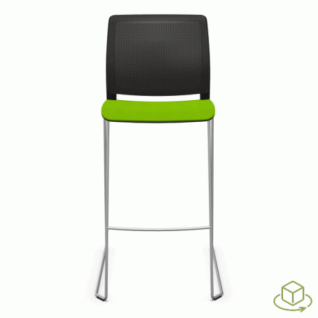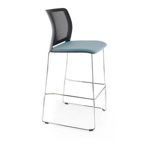 Tabouret traineau avec assise tapissée et dossier résille.