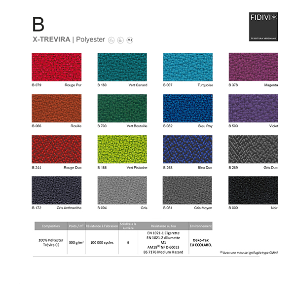 Coque assise : Polypropylène, ép 3mm